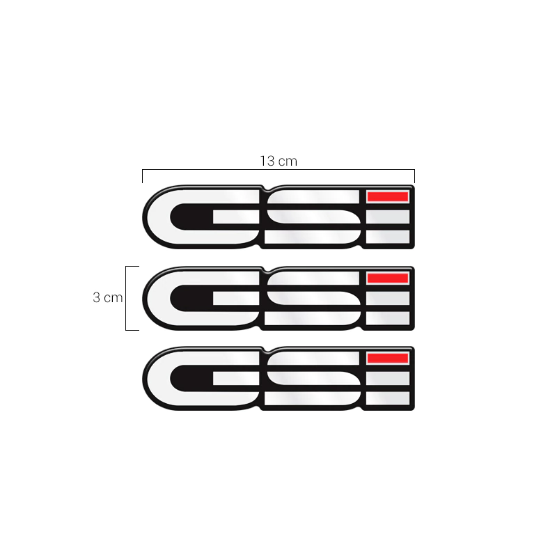 CARACTERÍSTICAS: 3 Emblemas Gsi Kadett / Fabricado em Poliéster Cromado / Dimensões: 13 x 3 cm
