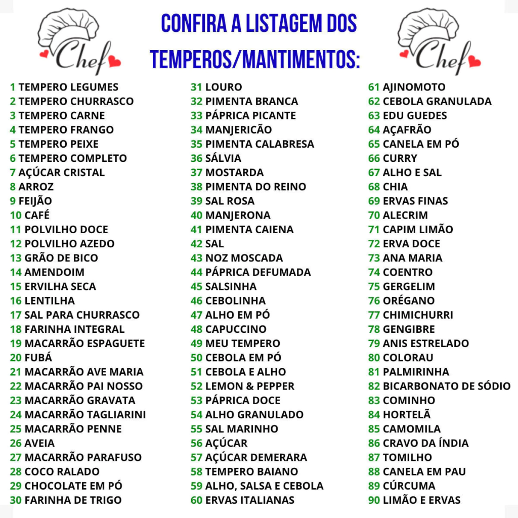 _x000D_Lista de Temperos e Condimentos Incluídos: