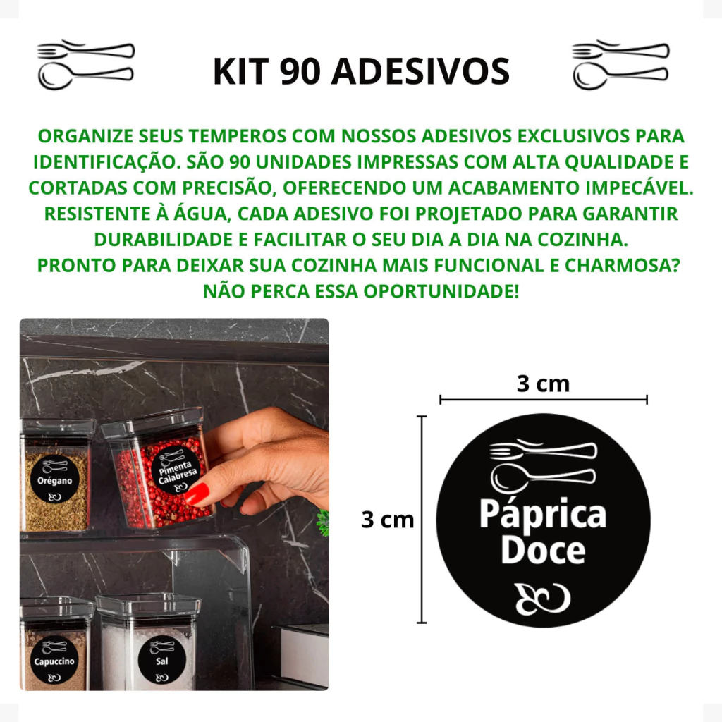 Conjunto de 90 Etiquetas para Temperos e Condimentos – Organização e Estilo para Sua Cozinha!