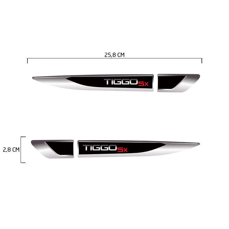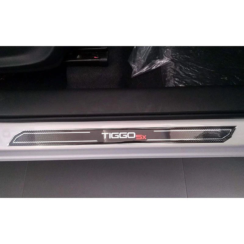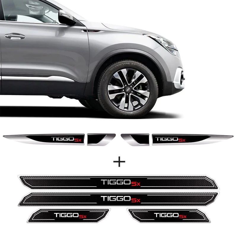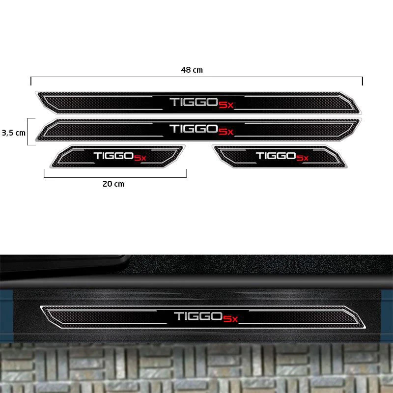 Kit Emblemas Resinados Chery Tiggo 5x 2019/2020 Aplique Lateral Decorativo + Soleira Da Porta Com Proteção Black Over