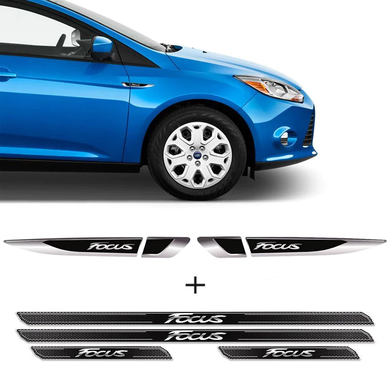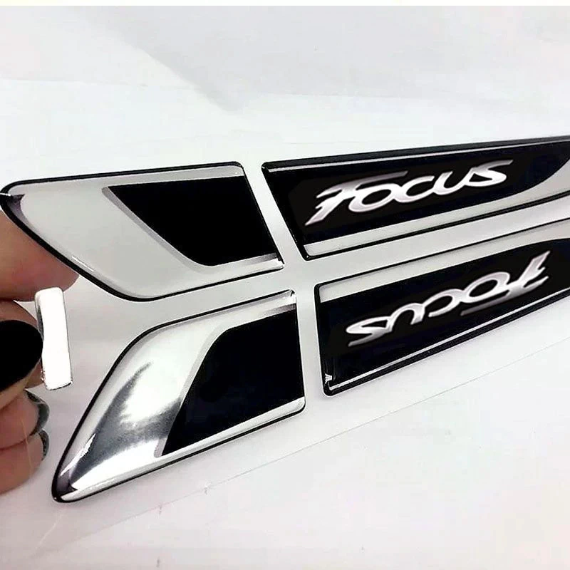 Kit Emblemas Resinados Focus 2014/2019 Aplique Lateral Decorativo + Soleira Da Porta Com Proteção Black Over