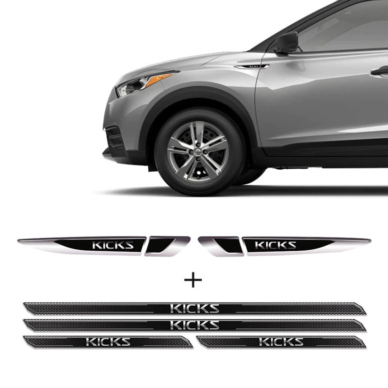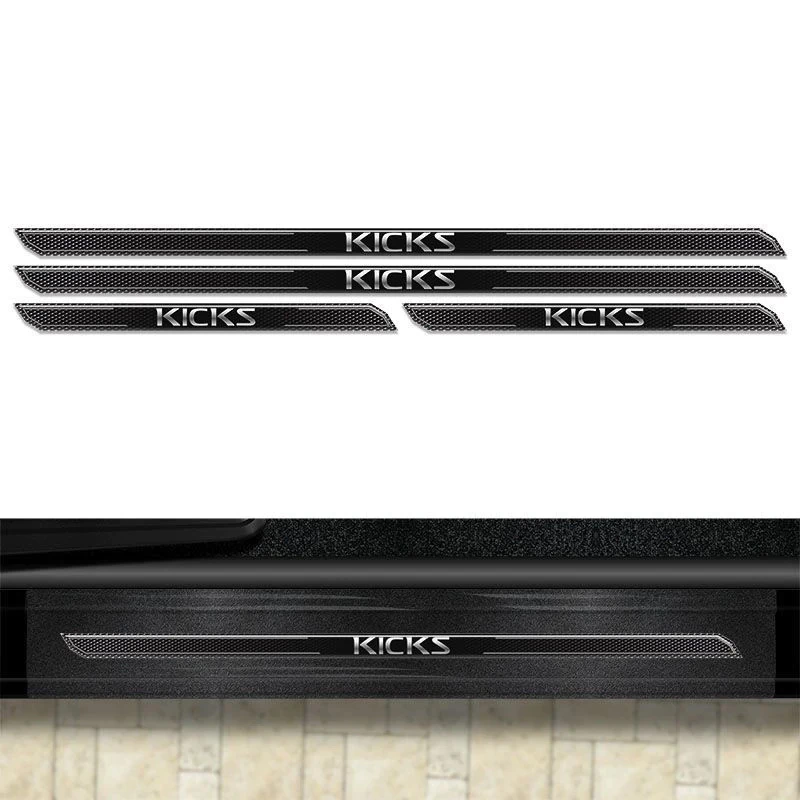 Kit Emblemas Resinados Nissan Kicks 2017/2020 Aplique Lateral Decorativo + Soleira Da Porta Com Proteção Black Over