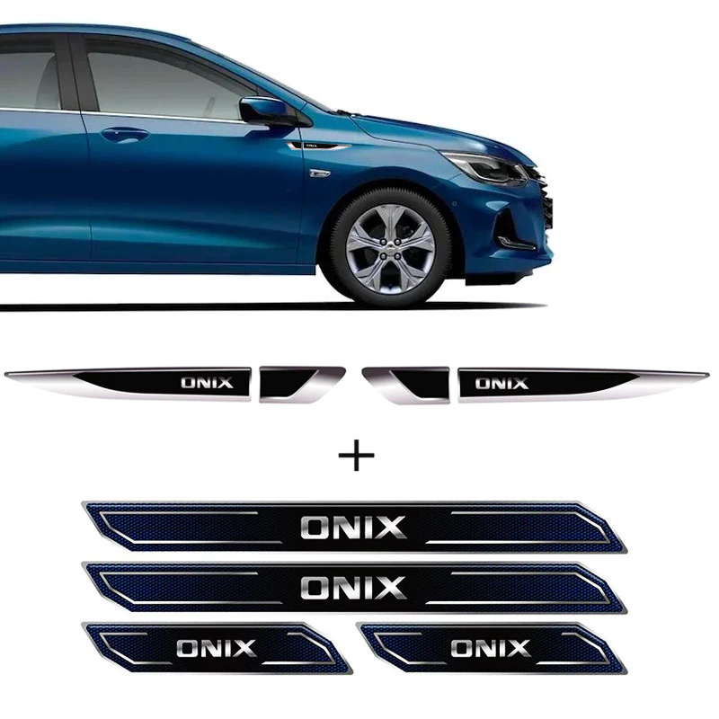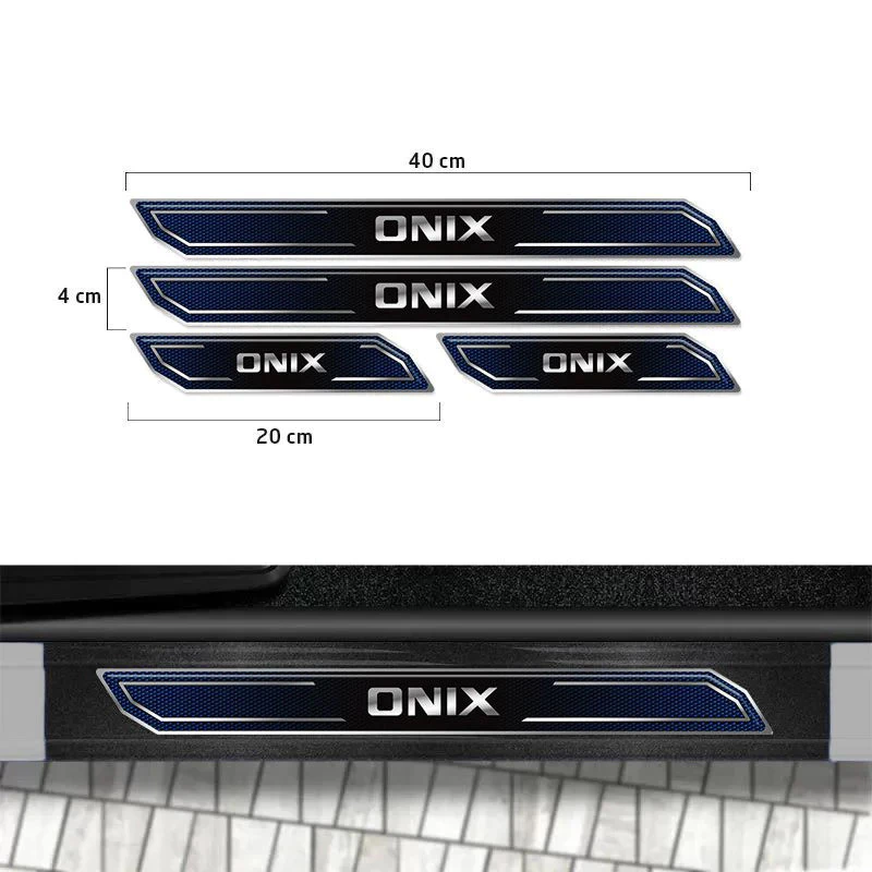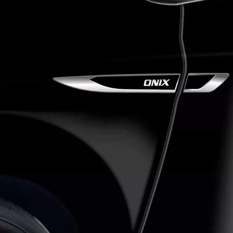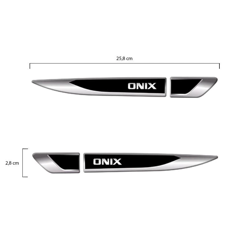 Kit Emblemas Resinados Onix 2020 Turbo Plus Aplique Lateral Decorativo + Soleira Da Porta Com Proteção Black Over