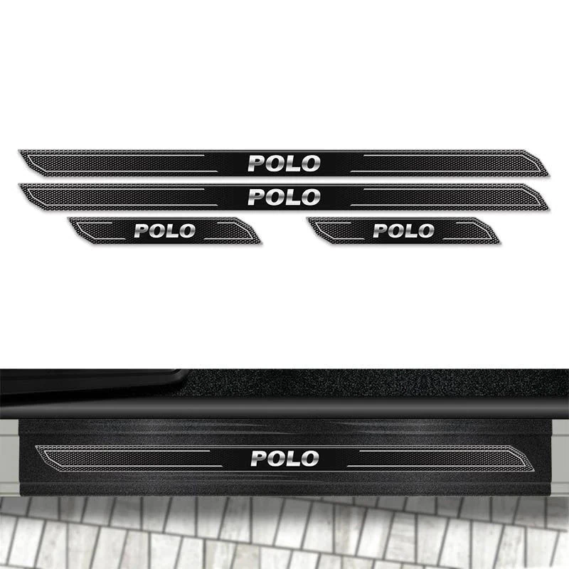 Kit Emblemas Resinados Volkswagen Polo 2018/2020 Aplique Lateral Decorativo + Soleira Da Porta Com Proteção Black Over