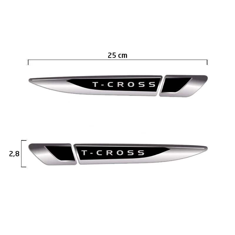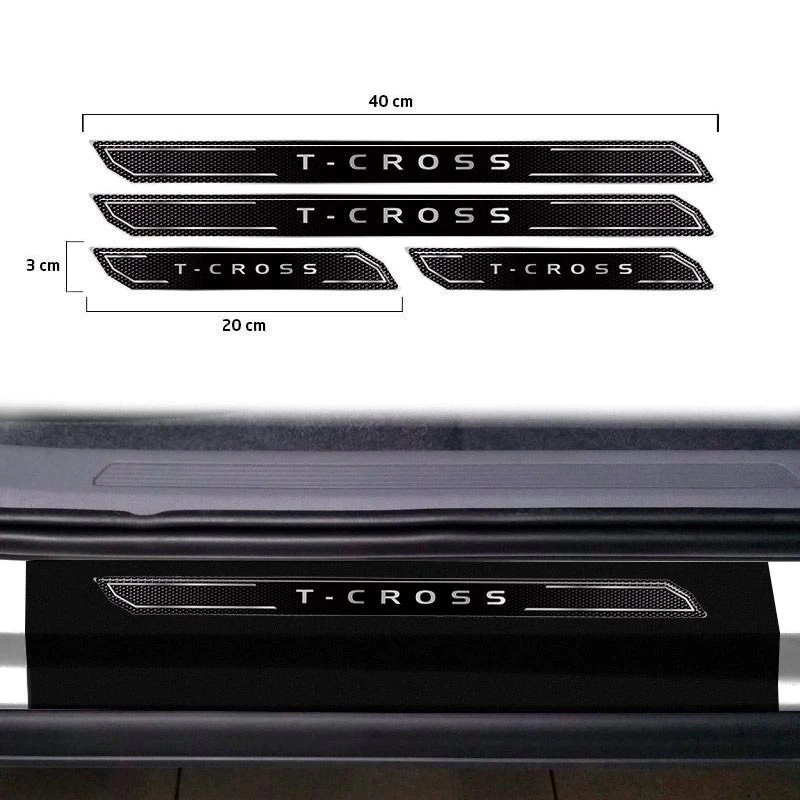 Kit Emblemas Resinados Volkswagen T-Cross 2019/2020 Aplique Lateral Decorativo + Soleira Da Porta Com Proteção Black Over