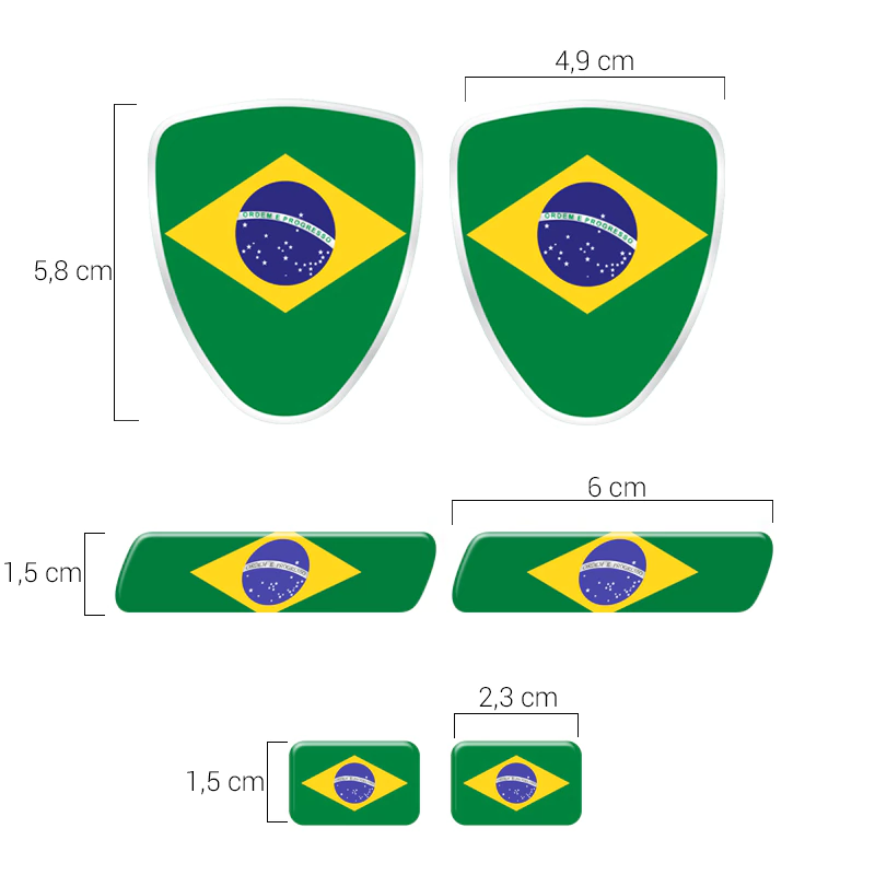 Kit Adesivos Emblemas País Brasil Escudo Placa Coluna Bandeira Resinada