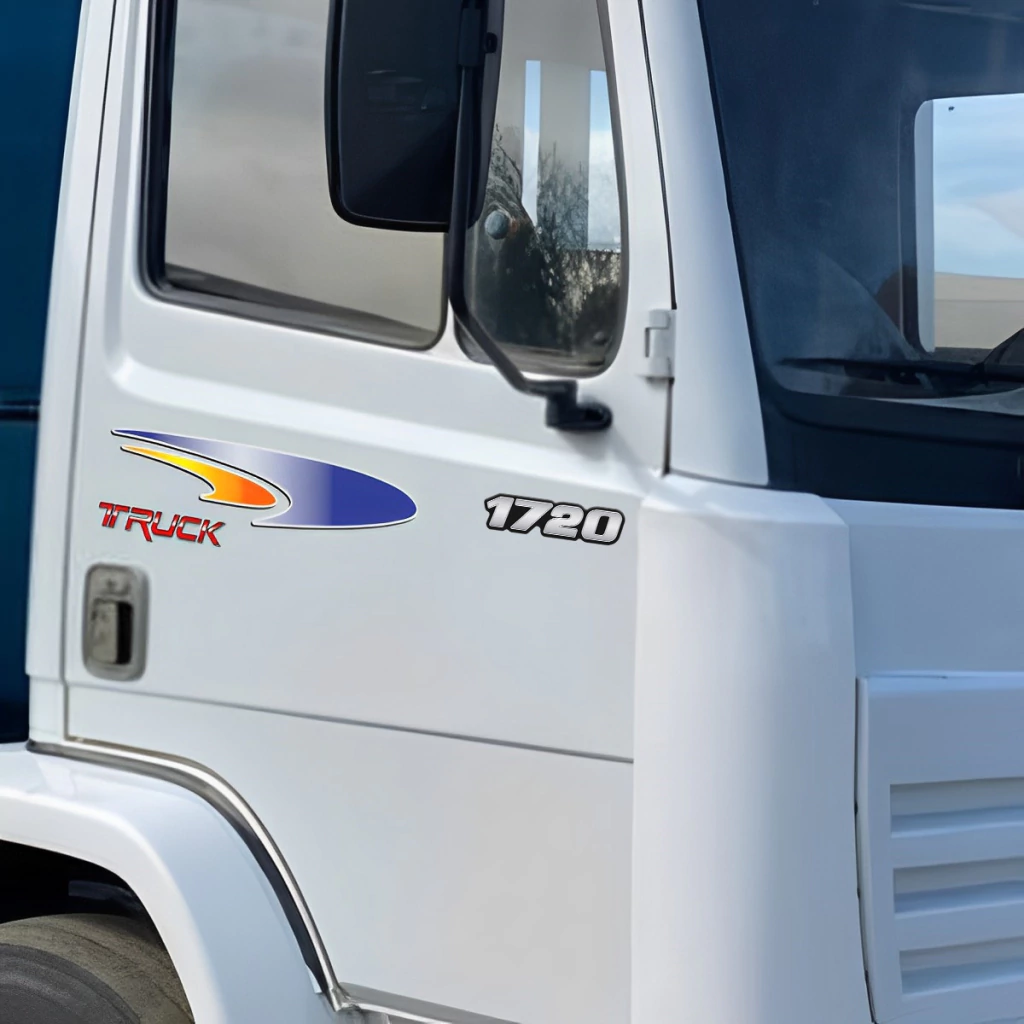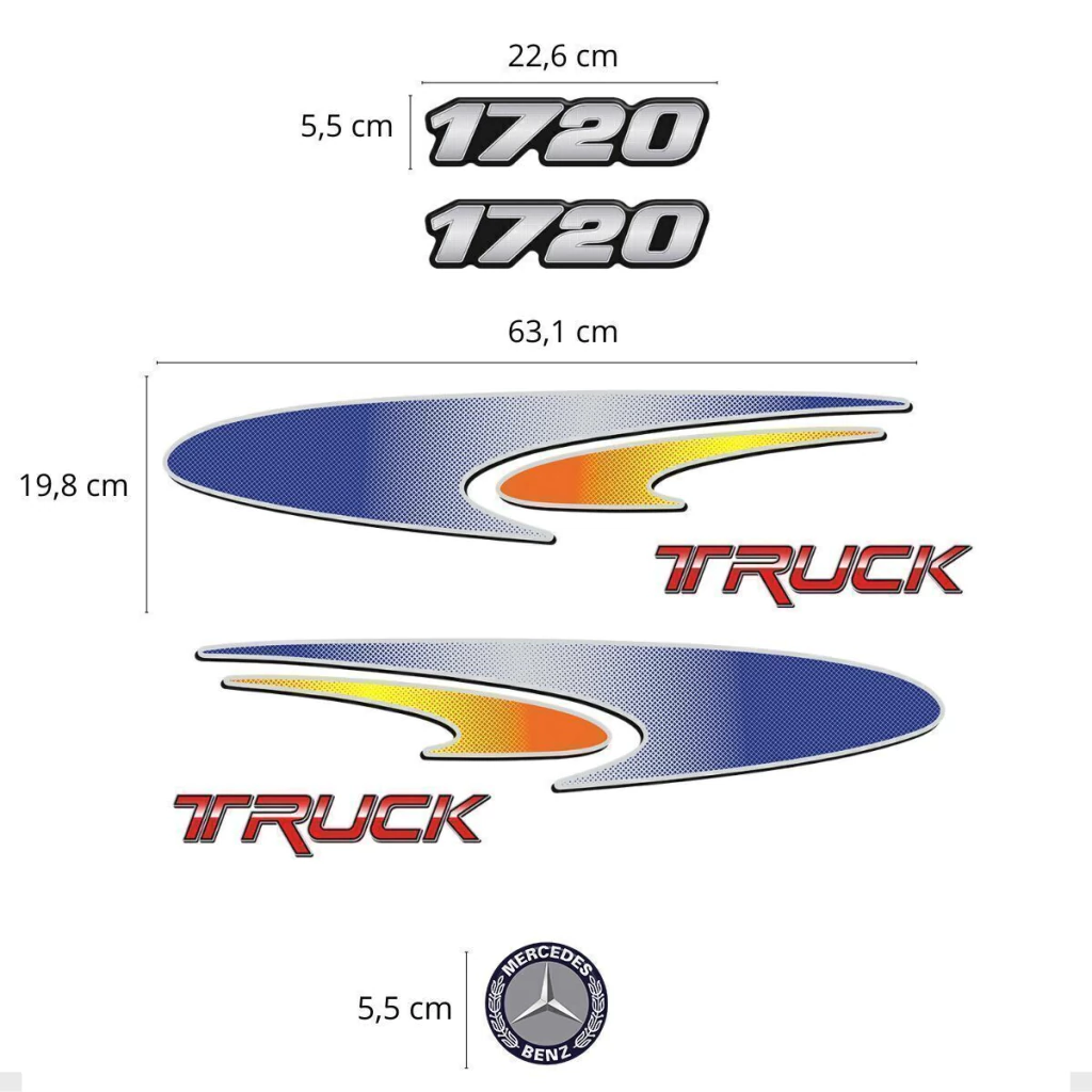 Kit Adesivos 1720 Truck Lateral + Logo Mercedes Benz Frontal + Emblema Advertências Aprovado Compatível Com Mercedes Benz 1720 Moderno Emblema Lateral Resinado Cromado - Genérico