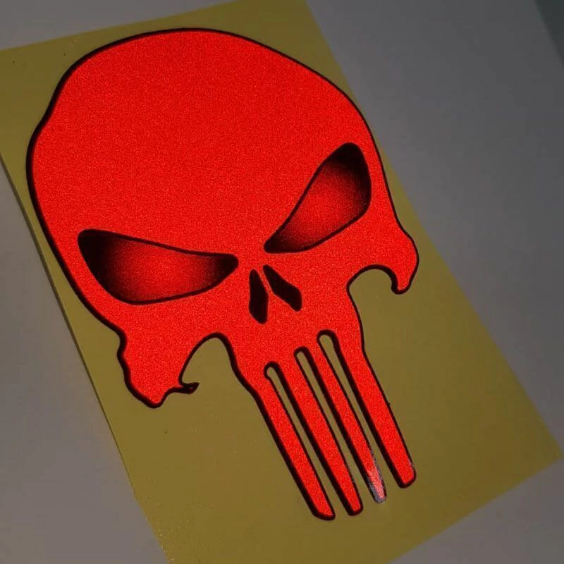 _x000D_Adesivo Caveira O Justiceiro Olhos vermelhos Refletivo