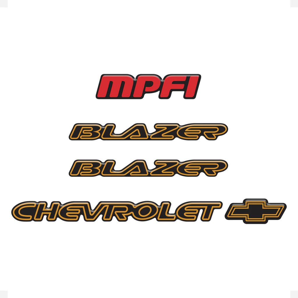 Kit Adesivos Compatível Com Chevrolet Blazer MPFI 1996 1997 1998 1999 Emblema Lateral e Traseiro Preto e Dourado Resinado - Genérico