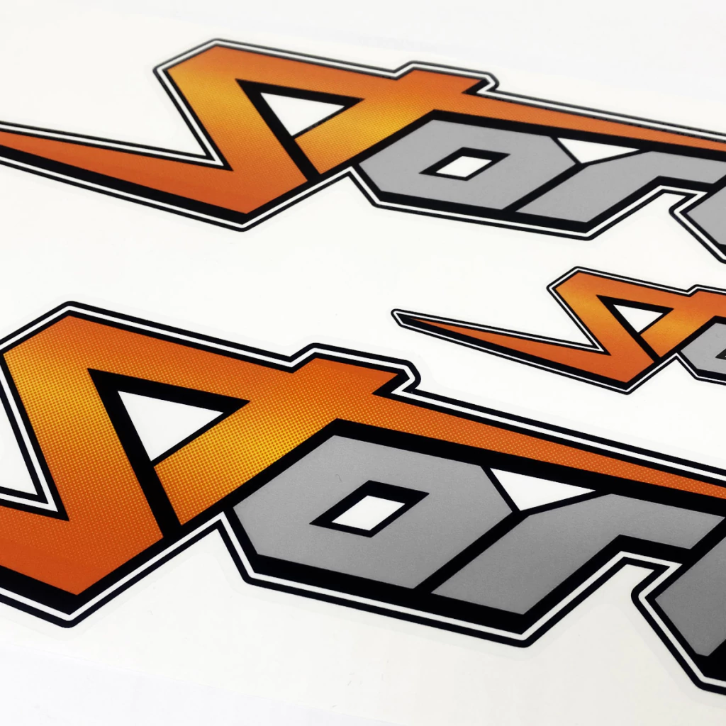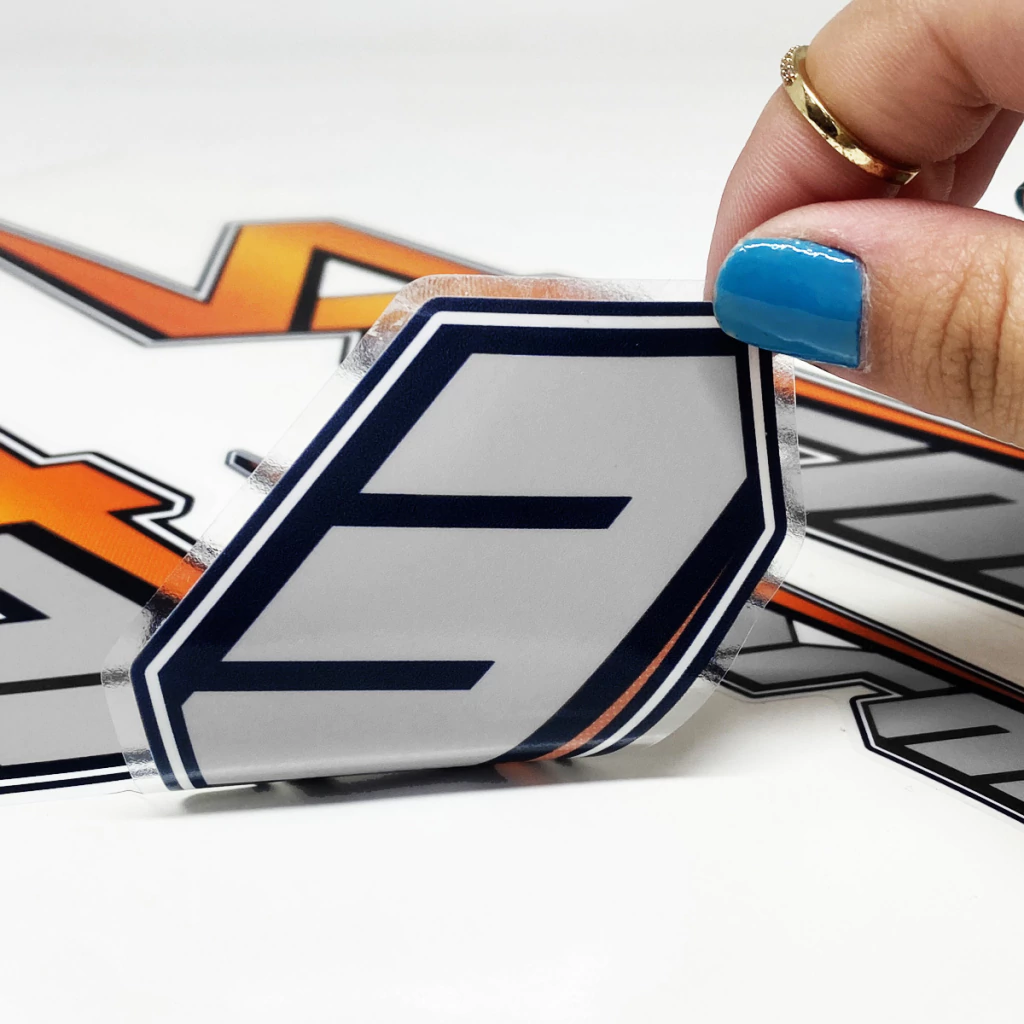 Os adesivos são produzidos em vinil automotivo autocolante importado, dispensando a utilização de produtos para a fixação e já possuem verniz automotivo.