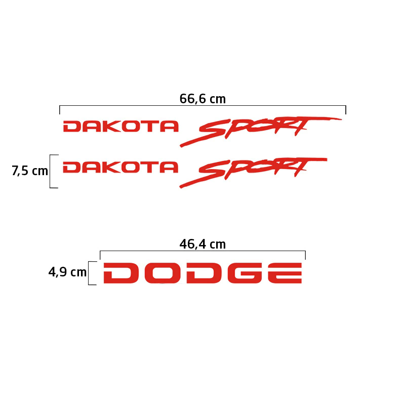 Kit Adesivos Dakota Sport Dodge Emblemas Laterais e Traseiro Vermelho -