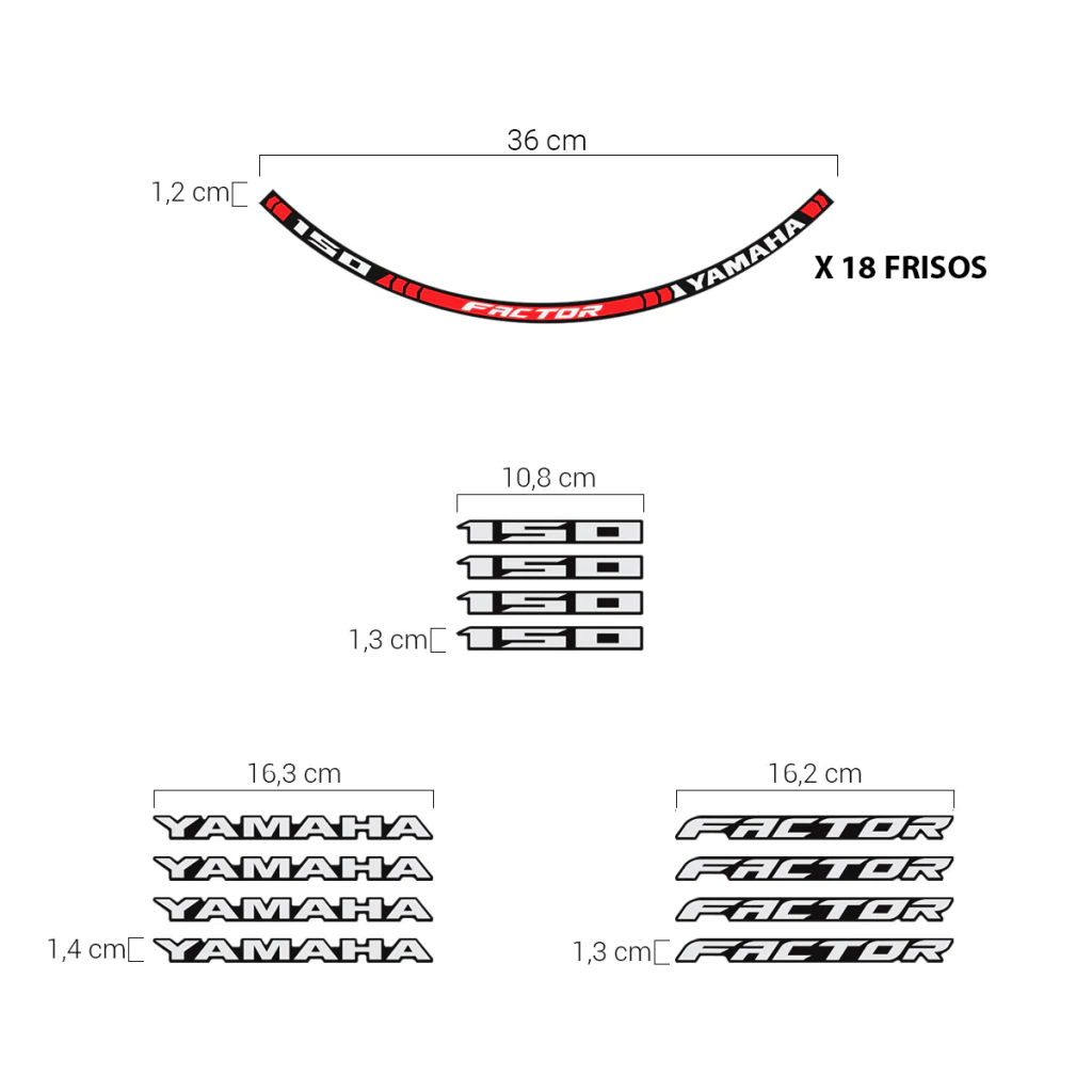 _x000D_Kit Aplique Da Roda Moto Yamaha Factor 150 Adesivo Vermelho Refletivo Decorativo