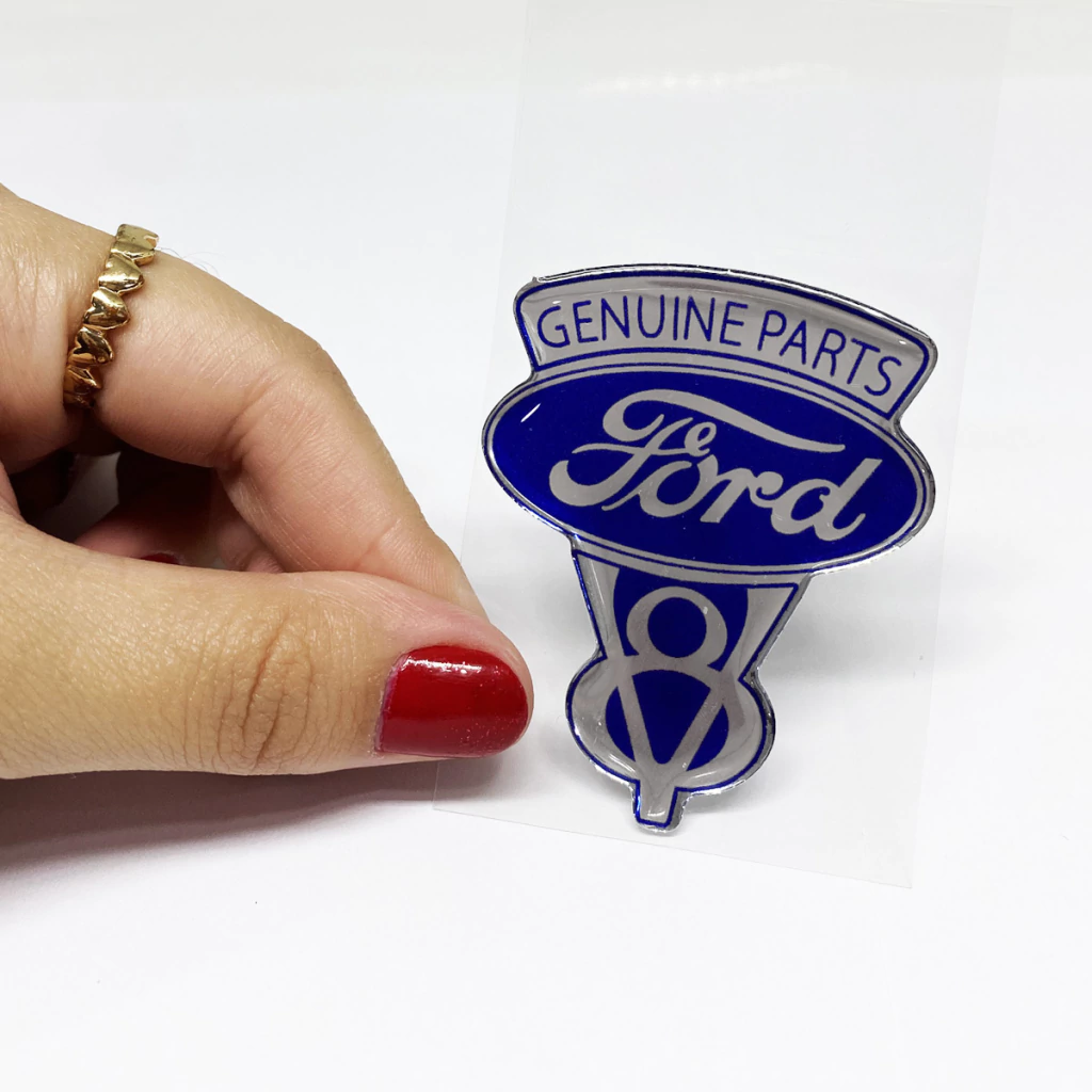 Adesivo Resinado Decorativo Ford V8 Genuine Parts Azul 32/53, Flathead Teile, Flathead Parts, Maverick, Mustang...