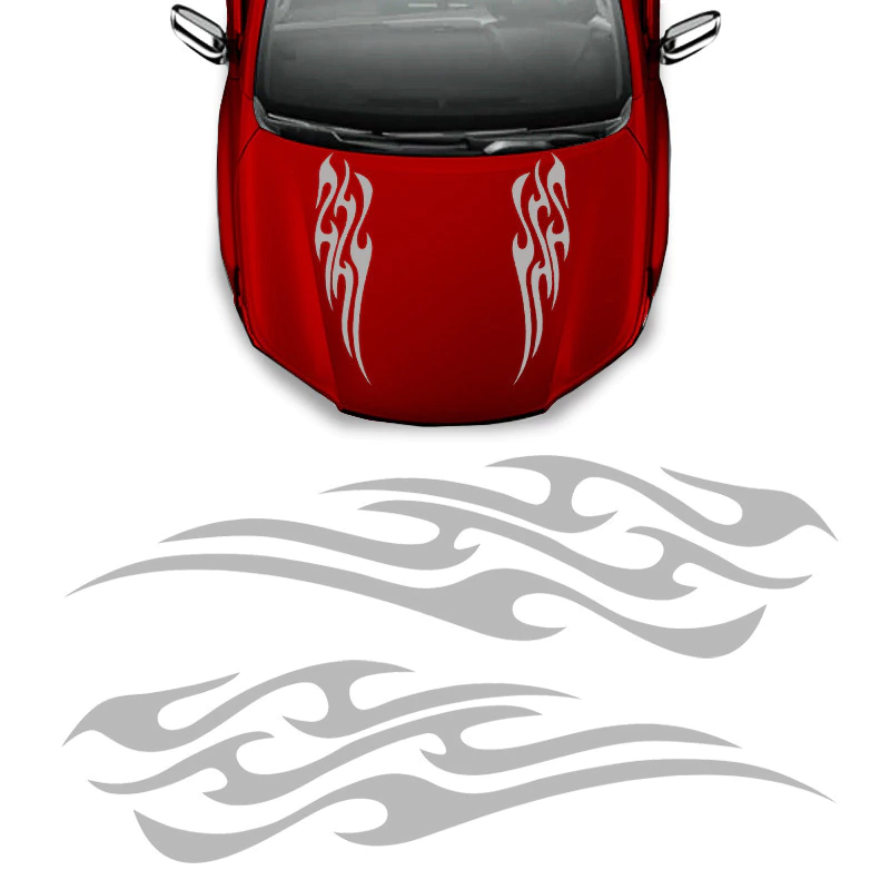 Faixa do Capô Tuning Chamas Tribal Adesivo Personalizado Prata Decorativo Carro
