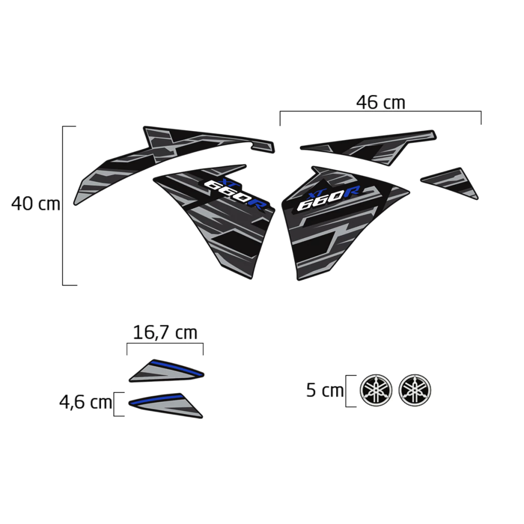 Adesivos Moto Compativel Yamaha Xt 660r 2015 2016 2017 2018 Faixa Lateral Tanque + Emblemas Logo Resinado 50mm