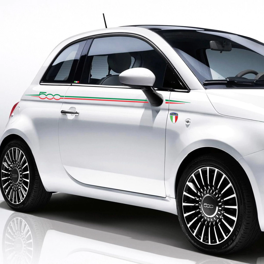 Kit Adesivos Compatível Fiat 500 Faixa Lateral + Emblemas Cromado Resinado Coluna Placa e Escudo - Genérico
