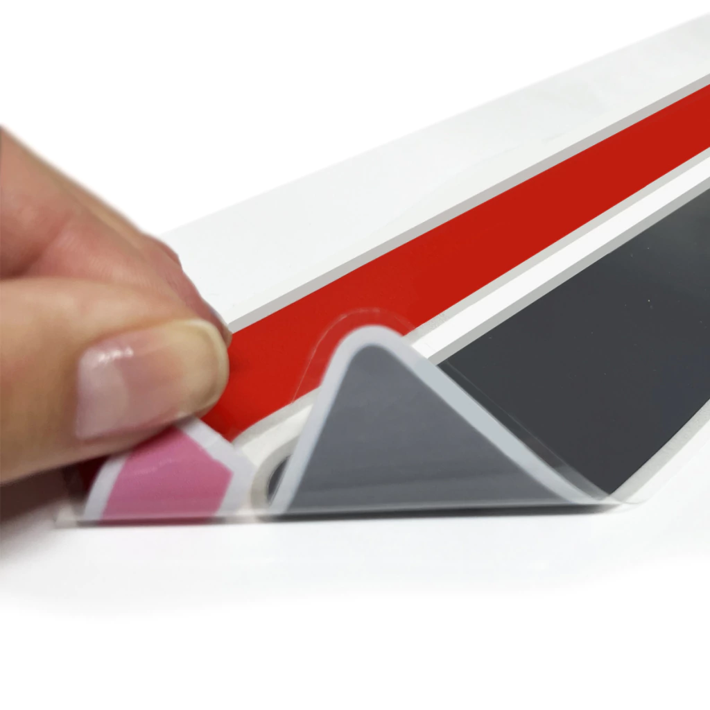 Os adesivos são produzidos em vinil automotivo autocolante importado, dispensando a utilização de produtos para a fixação e já possuem verniz automotivo.