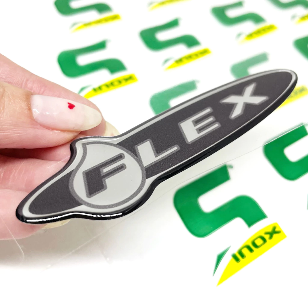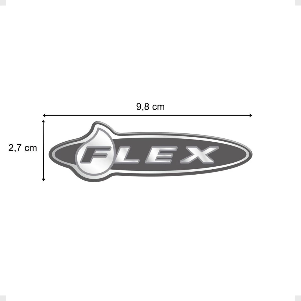 1 Adesivo Flex / Fabricado em Poliéster Cromado / Dimensões: 9.8 x 2,7 cm