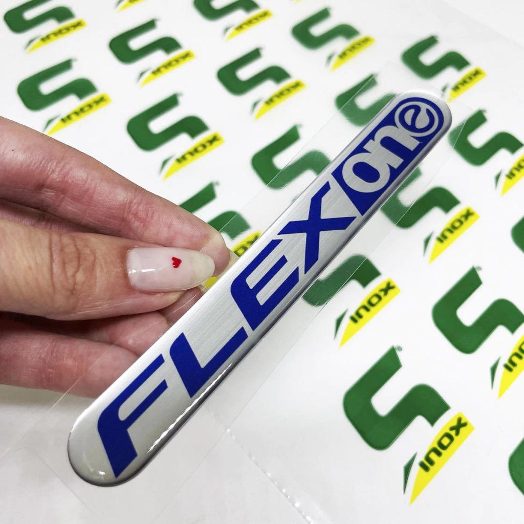 1 Adesivo Flex One / Fabricado em Poliéster Escovado / Dimensões: 12,3 x 1,7 cm