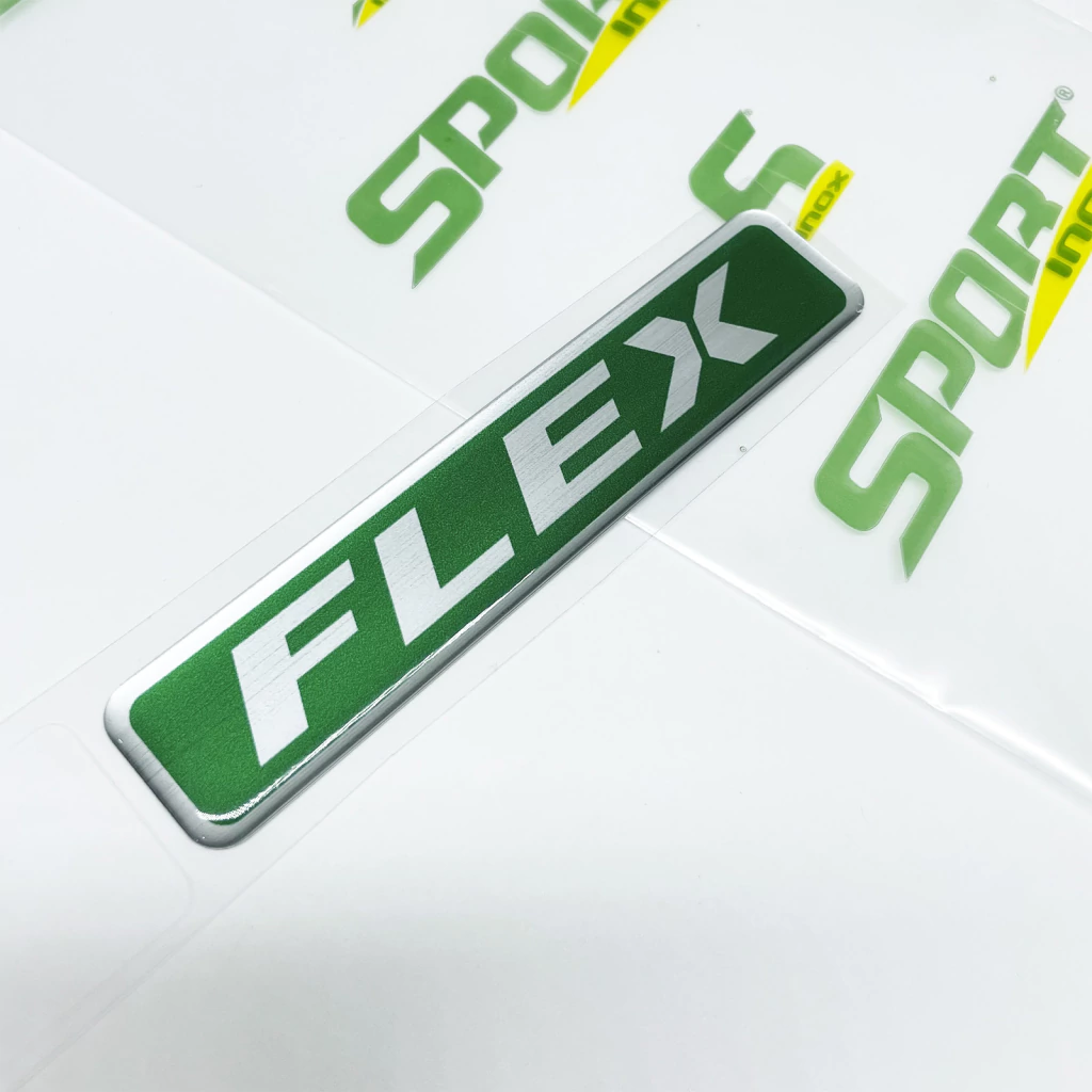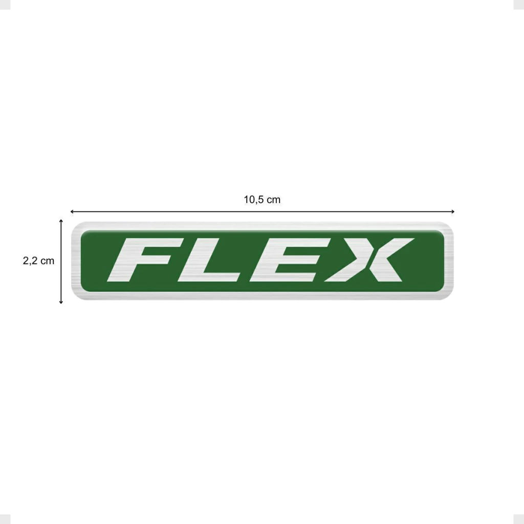 1 Adesivo Flex / Fabricado em Aço Escovado / Dimensões: 10,5 x 2,2 cm