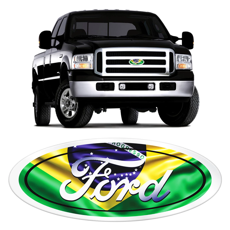 Adesivo Ford Oval Grade F-250 Bandeira Brasil Emblema Resinado Cromado