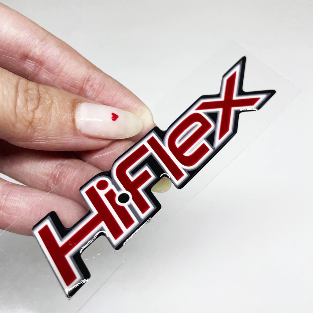 1 Adesivo Hi Flex / Fabricado em Poliéster Cromado / Dimensões: 8,8 x 2 cm