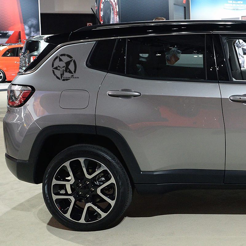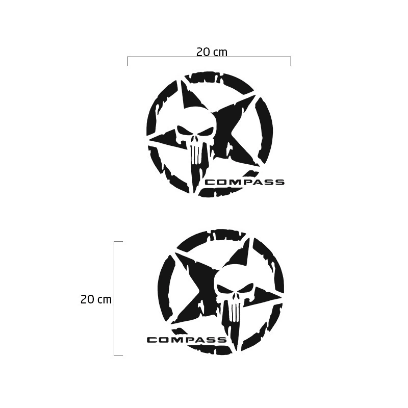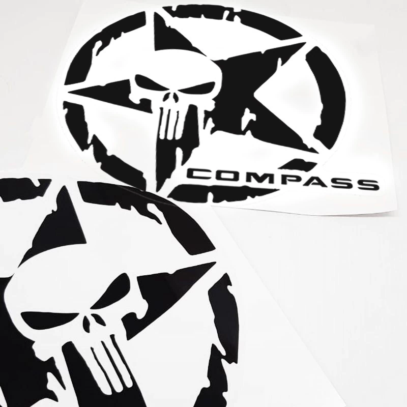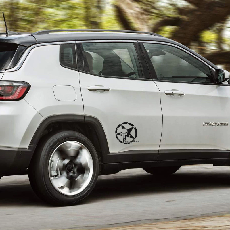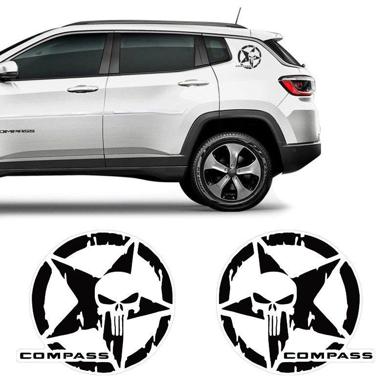 _x000D_Par de Adesivos Laterais Jeep Compass Caveira O Justiceiro Estrela Preto