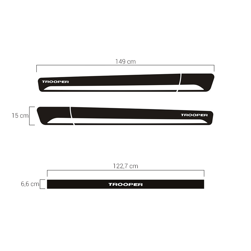 2 Faixas Lateral Saveiro Trooper / Fabricado em Vinil Transparente / Dimensões: 149 x 15 cm