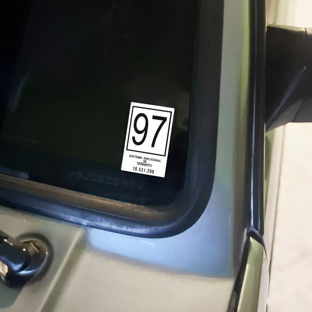 1 Adesivo Detran Licenciamento 97 / Fabricado em Vinil Transparente / Dimensões: 4,7 x 7,4 cm