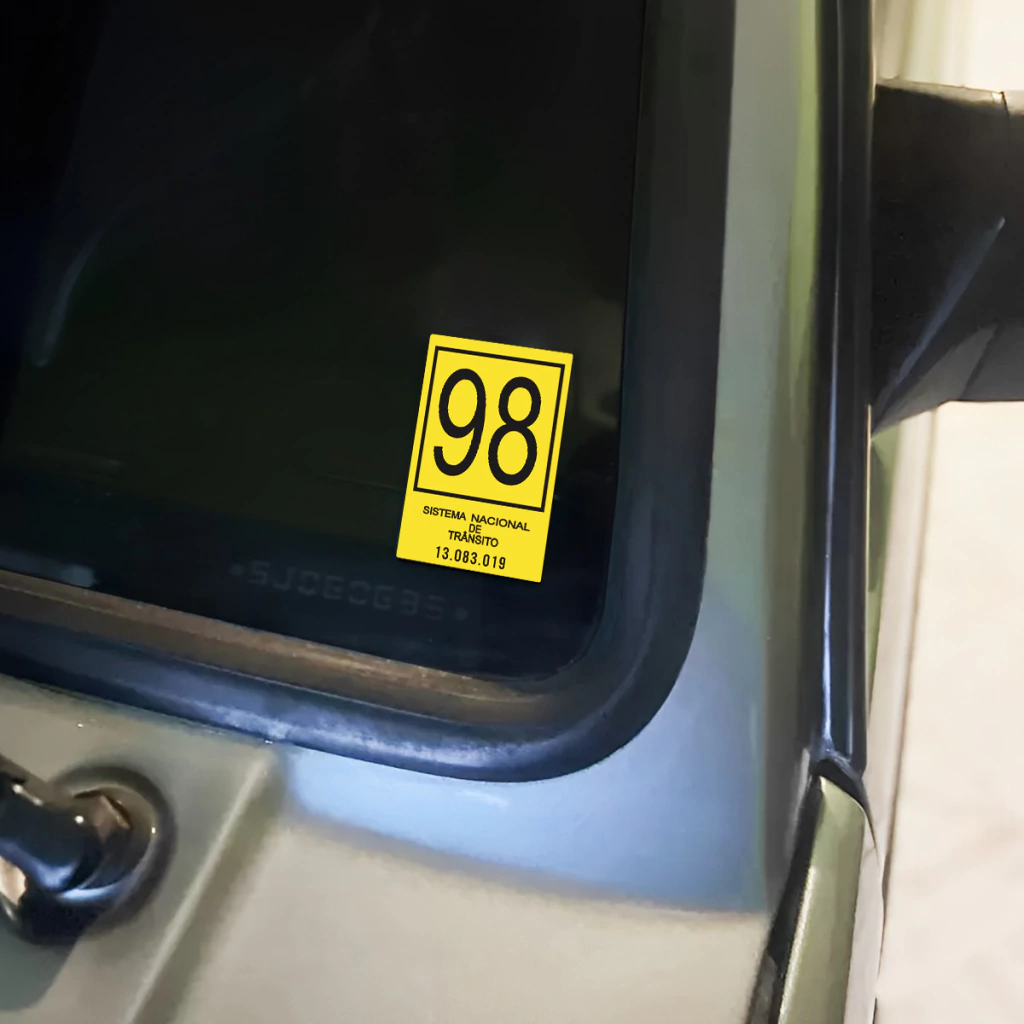1 Adesivo Detran Licenciamento 98 / Fabricado em Vinil Transparente / Dimensões: 4,7 x 7,4 cm