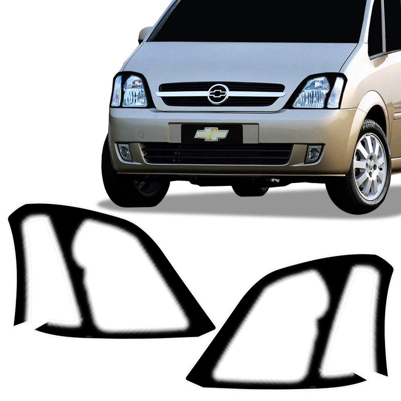 Par de Apliques Farol Meriva 2003/2011 Máscara Negra Adesivo Preto