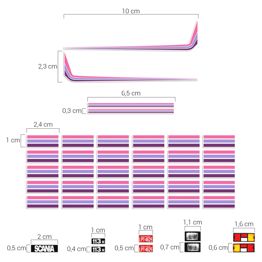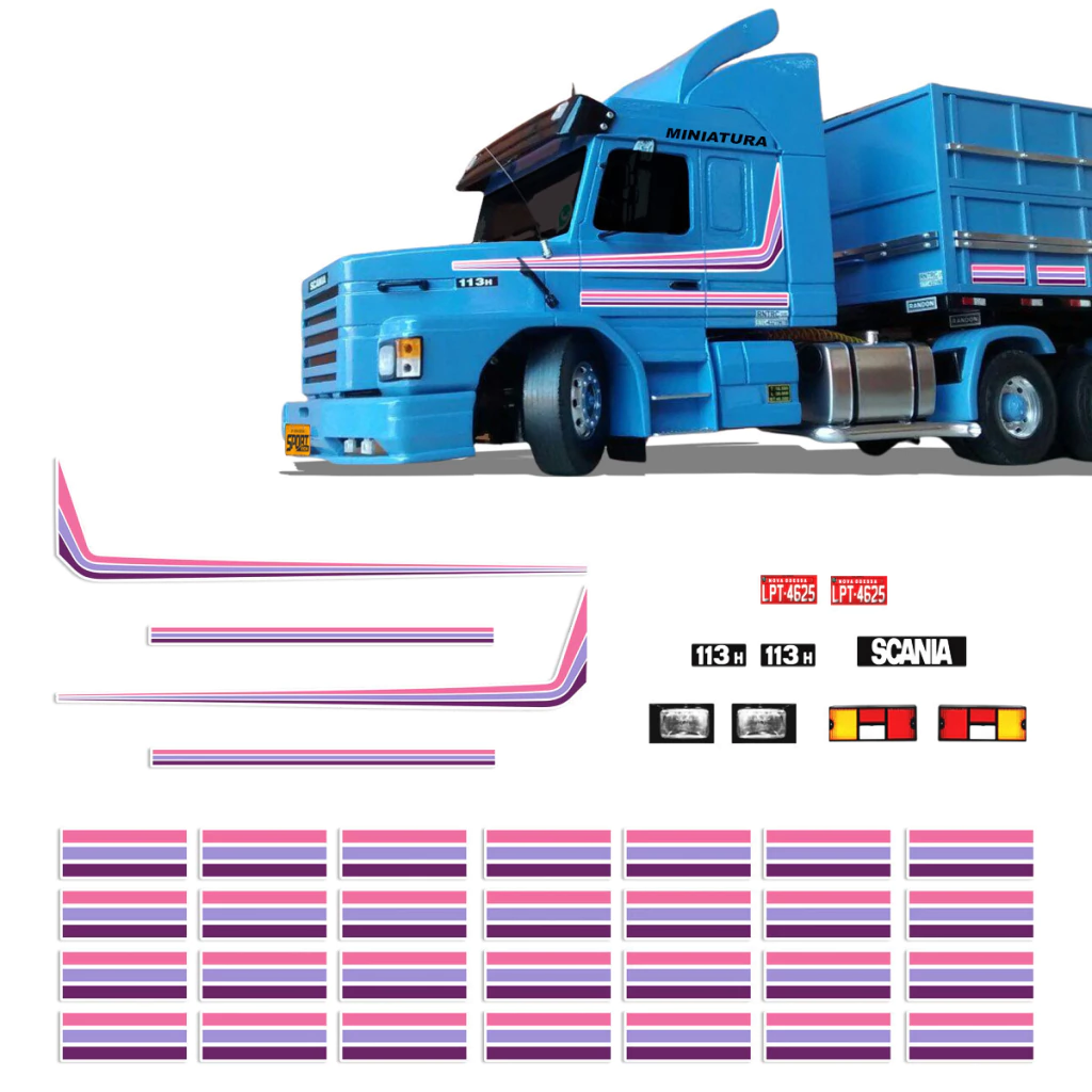Adesivo Scania 113 Faixa Miniatura 1/32 Lilás Vinil Branco Sem Resina