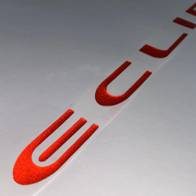 1 Emblema Eclipse / Fabricado em Vinil Vermelho Refletivo / Dimensões: 40,5 x 2,1 cm