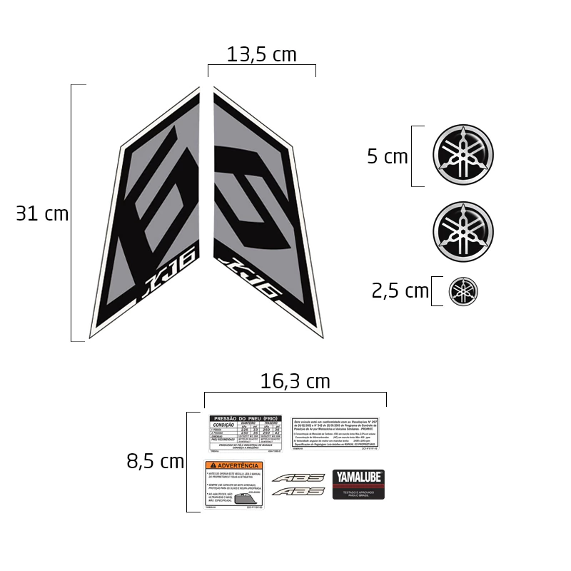 Kit Adesivos Moto Yamaha Xj6 2015 Faixa Do Tanque + Emblemas Advertência Abs e Logo Resinados