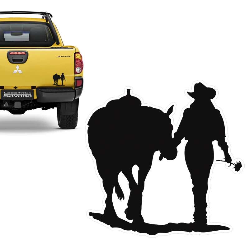 _x000D_Adesivo Mulher e Cavalo Country Sertanejo Preto Decorativo Universal