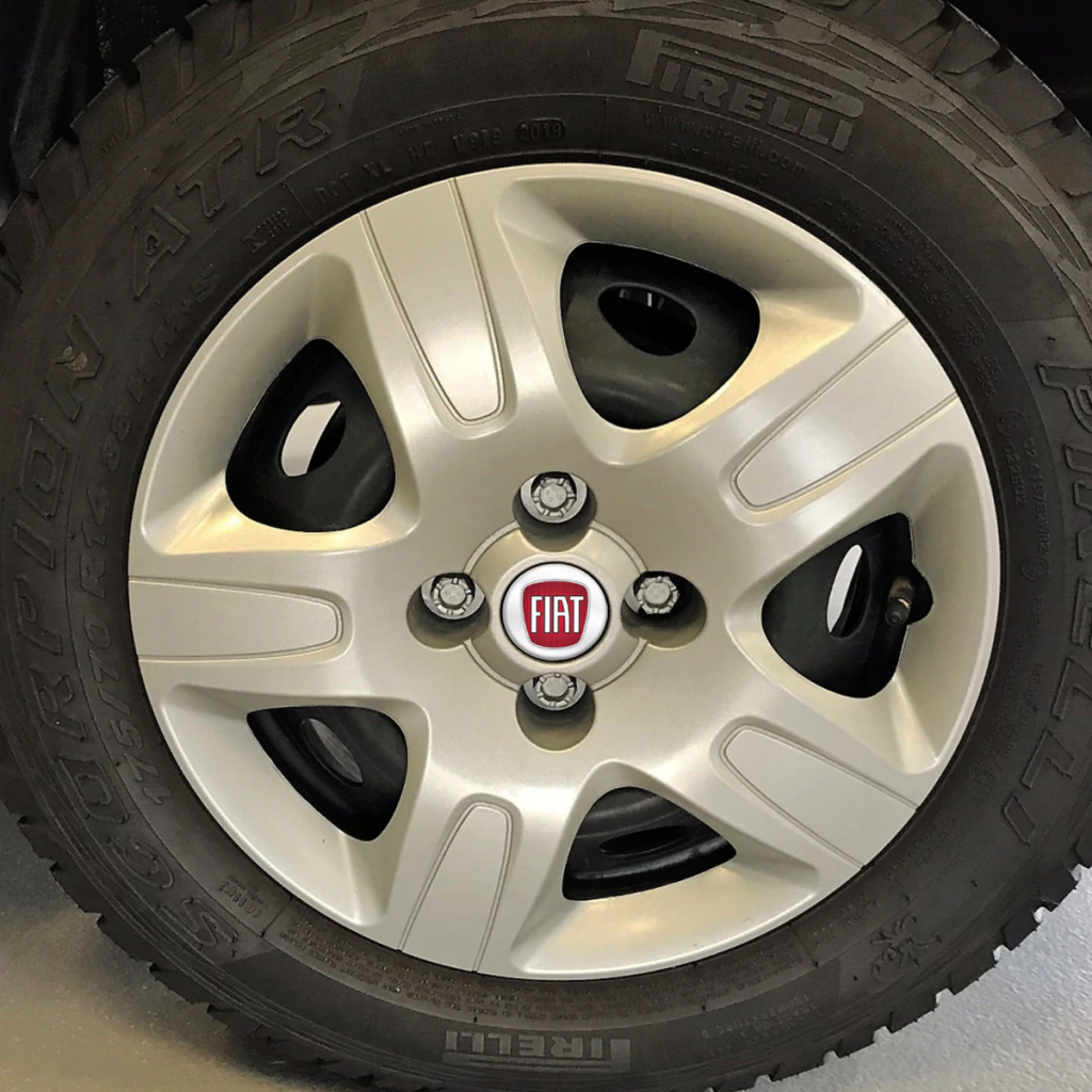 _x000D_4 Adesivos para a Roda Fiat Strada Vermelho / Fabricado em Poliéster Cromado / Dimensões: 48 mm