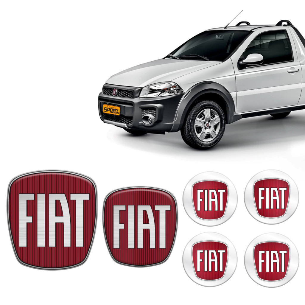 Kit Emblemas Para Fiat Strada 2009 2010 2011 2012 2013 2014 2015 2016 2017 2018 2019 2020 Vermelho Resinado - Genérico