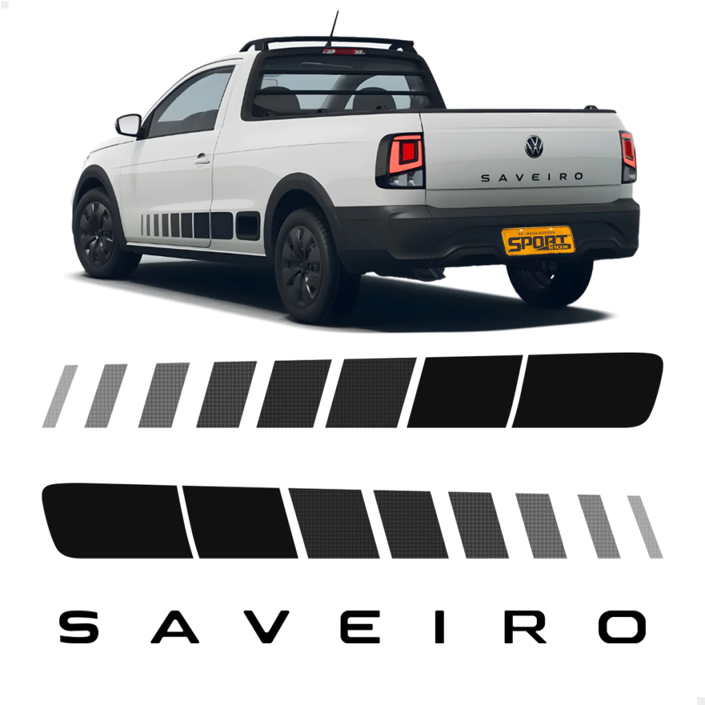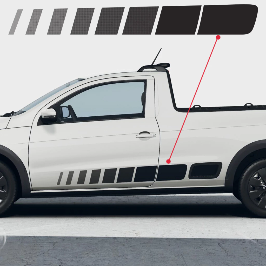 Kit Adesivos Para Saveiro Trendline 2024 Faixa Traseira + Lateral Preto