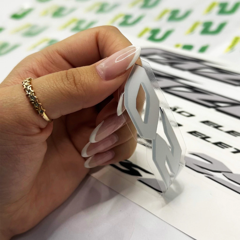Os adesivos para motos, além de determinar, em muitos casos, o modelo do veículo, também personalizam e protegem a pintura. Os adesivos são produzidos em vinil automotivo autocolante importado, dispensando a utilização de produtos para a fixação. Resina de alta qualidade, testada e aprovada na Flórida-USA. Possui a durabilidade de até 5 anos sem amarelar ou endurecer.