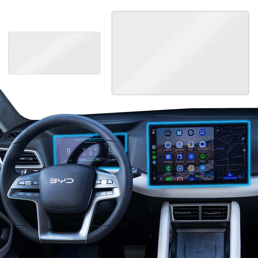 PPF Premium Película Brilhante e Fosca para BYD Yuan Pro 2025 – Multimídia e Painel de Velocidade