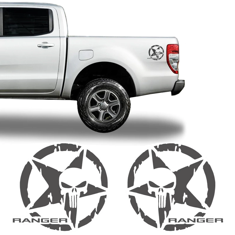Par de Adesivos Laterais Caveira O Justiceiro Estrela Ford Ranger