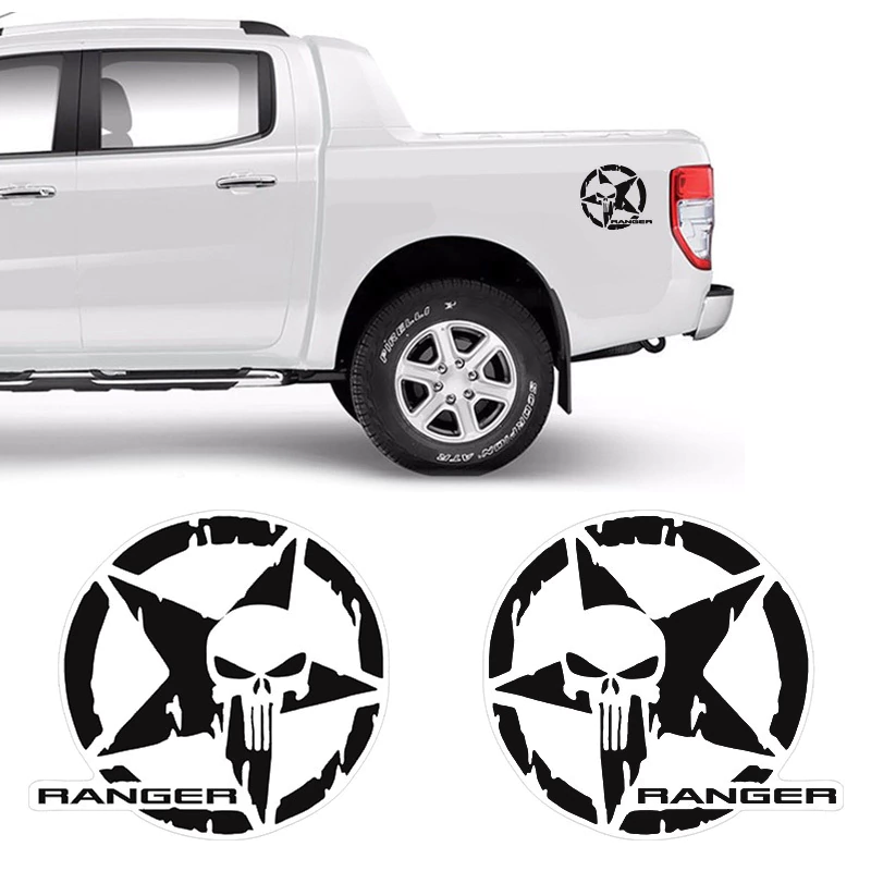 _x000D_Par de Adesivos Laterais Caveira O Justiceiro Estrela Preto Ranger