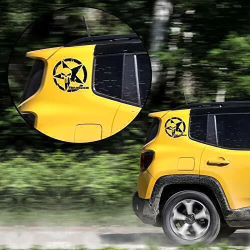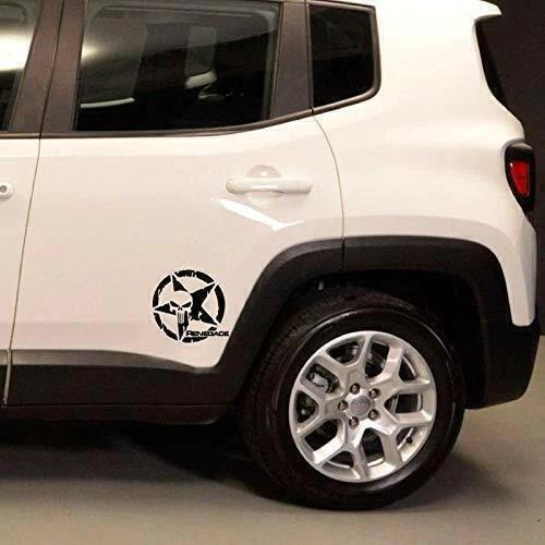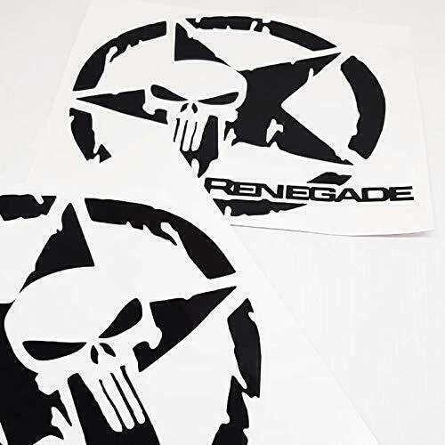 _x000D_Par de Adesivos Laterais Caveira O Justiceiro Estrela Preto Jeep Renegade