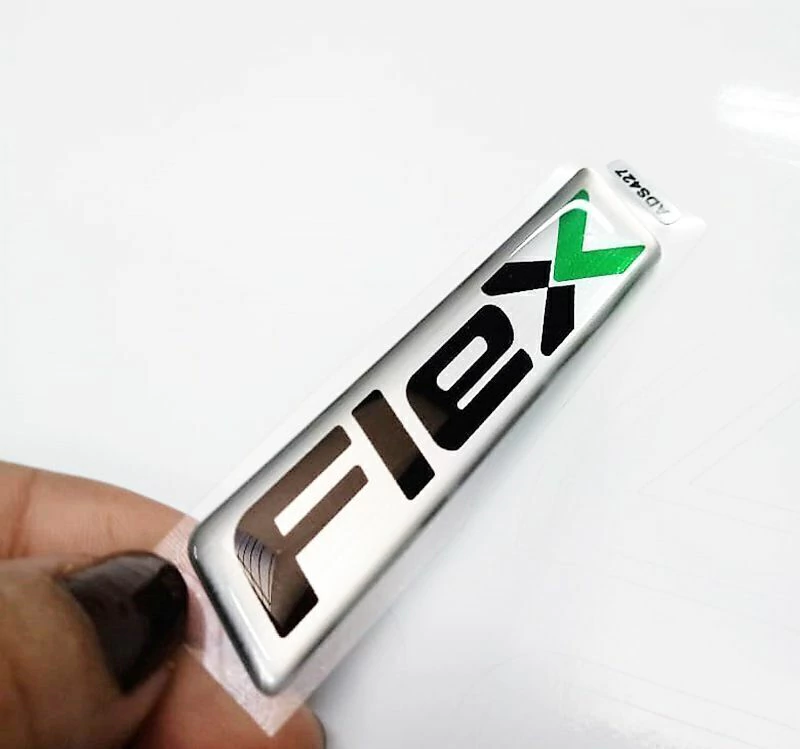 _x000D_1 Adesivo Flex Resinado / Fabricado em Poliéster Cromado / 9 x 1,9 cm