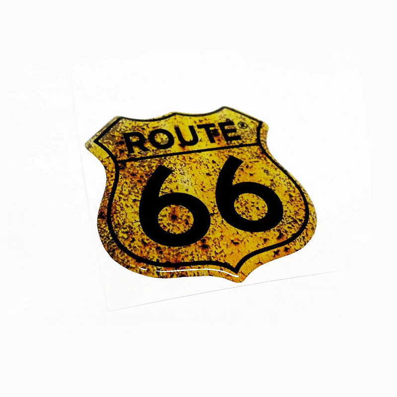 Adesivo Route 66 Emblema Resinado Unitario Universal - Adesivo para Moto, Carro, Notebook, Geladeira, Caderno...