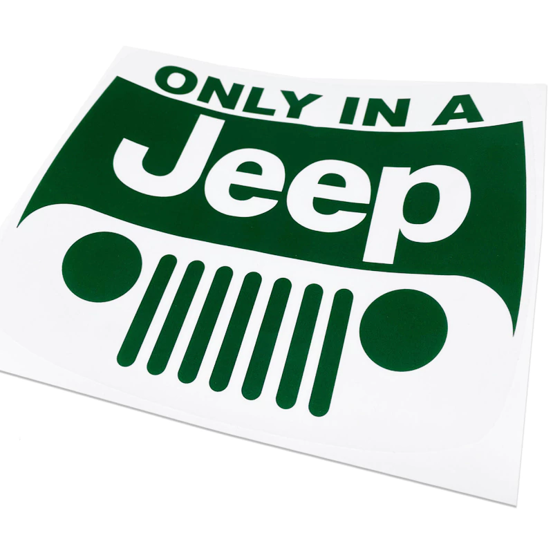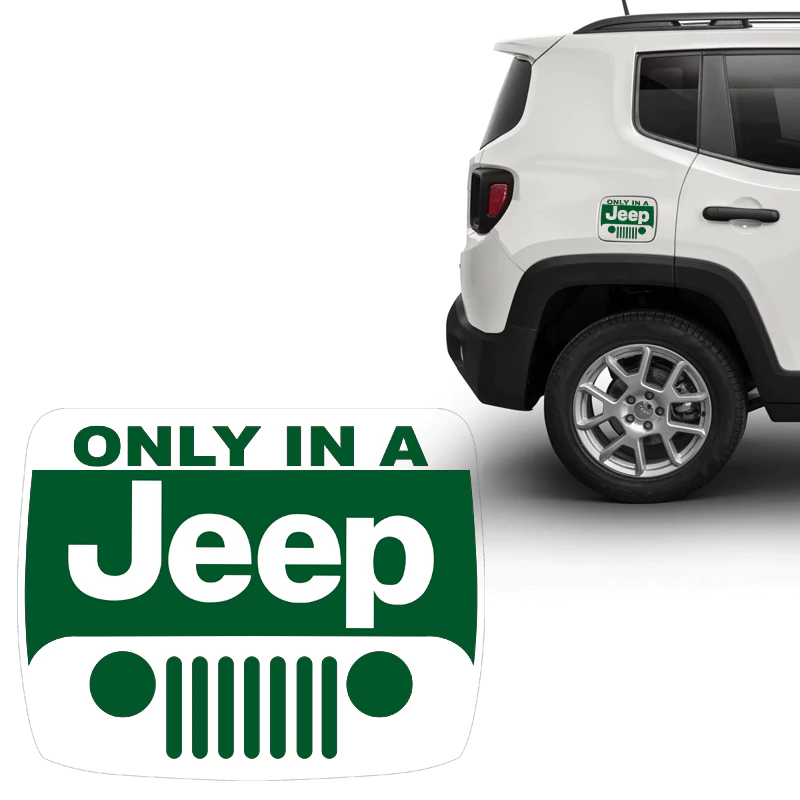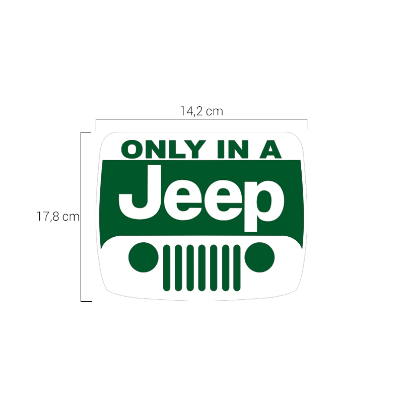 1 Adesivo Only In A Jeep / Fabricado em Vinil Transparente / Dimensões: 17,8 x 14,2 cm