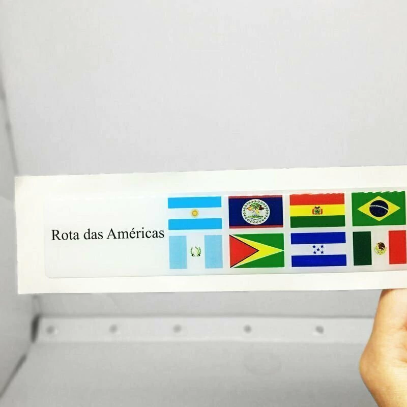1 Adesivo Resinado Rota das Américas / Fabricado em Vinil Branco / Dimensões: 37 x 3,4 cm