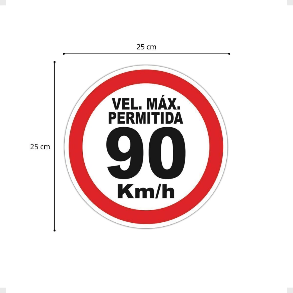 1 Adesivo Velocidade Máxima Permitida 90km Por Hora / Fabricado em Vinil Branco / Dimensões: 25 cm