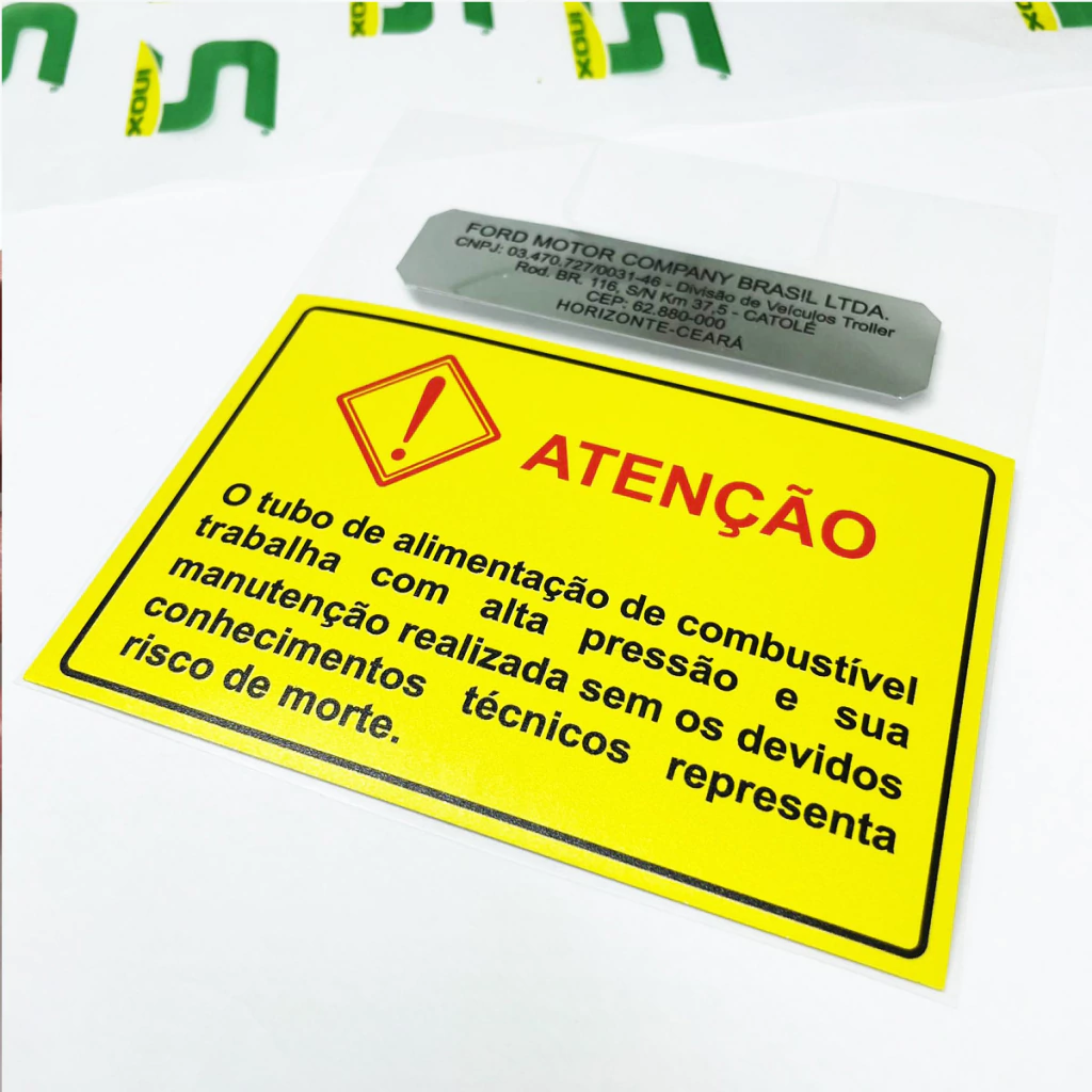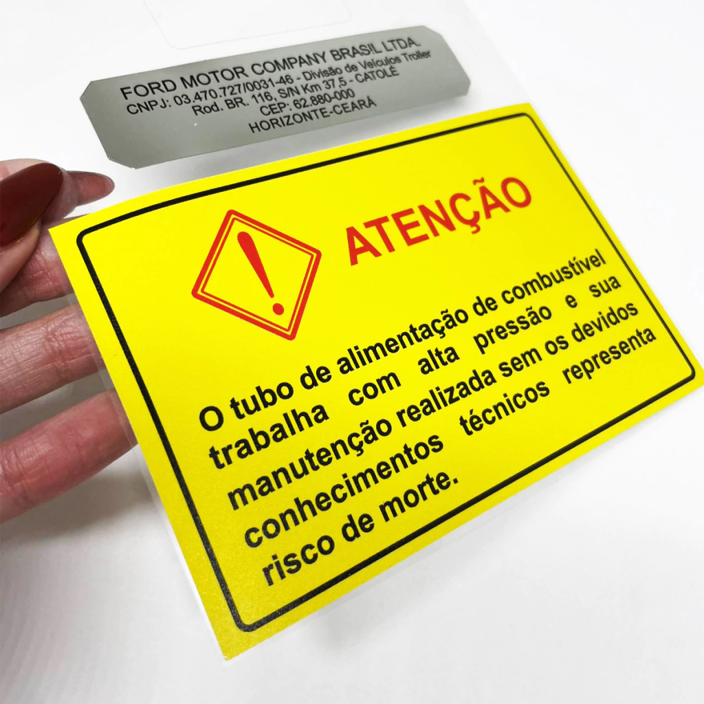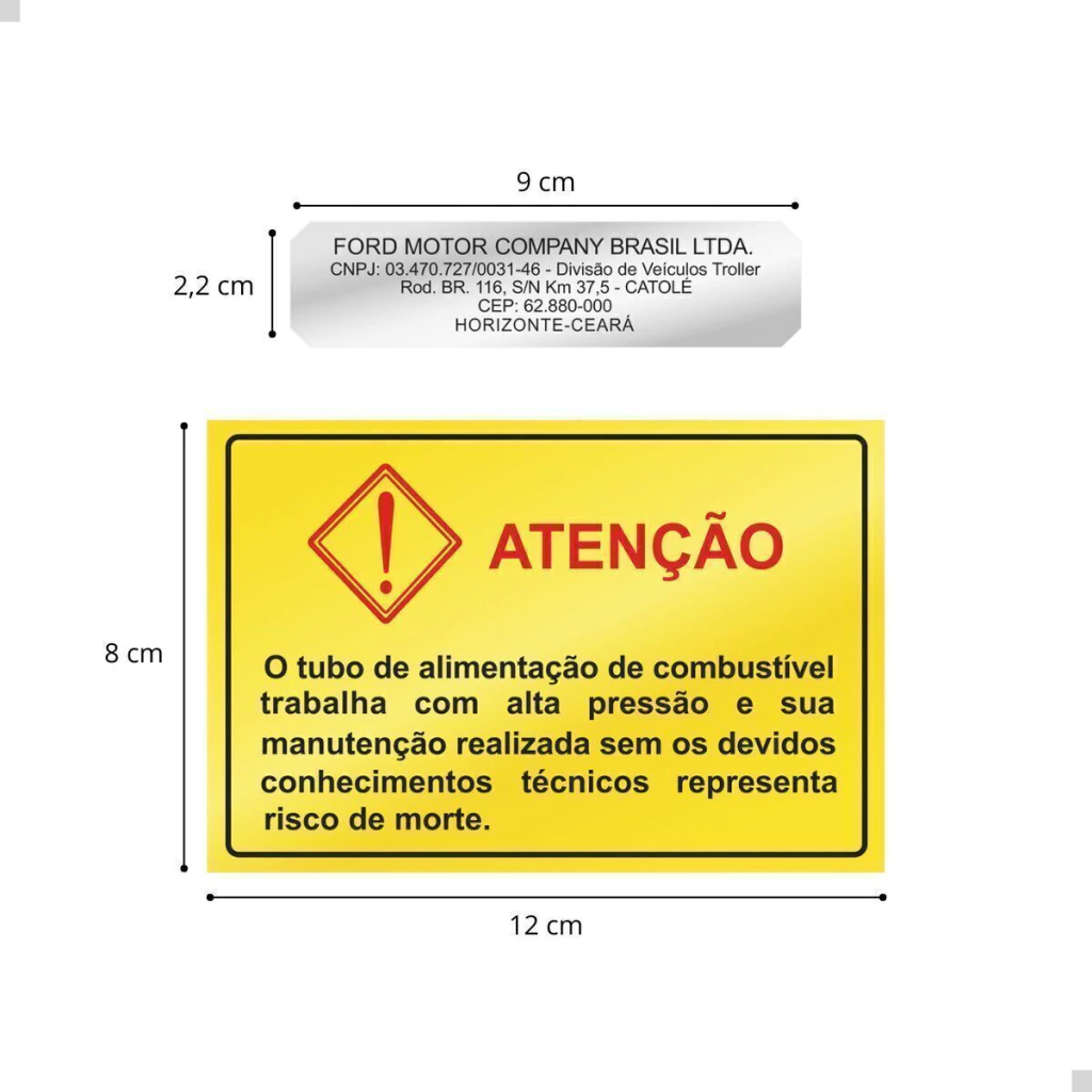 2 Adesivos Advertência / Fabricado em Poliéster Cromado / Dimensões: 9 x 2,2 cm - 12 x 8 cm