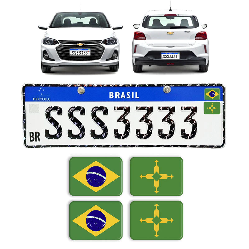 Adesivos Bandeiras Brasil e Distrito Federal Placa Nova Mercosul de Carro Resinados